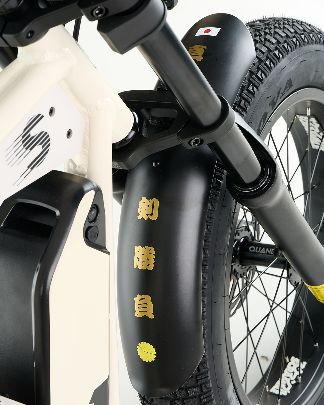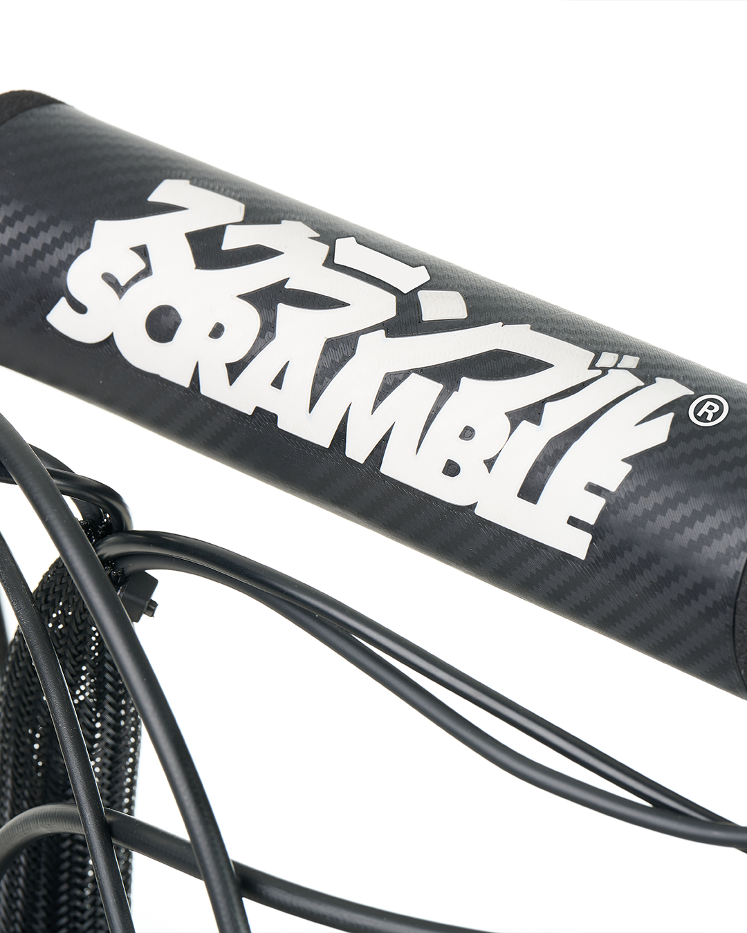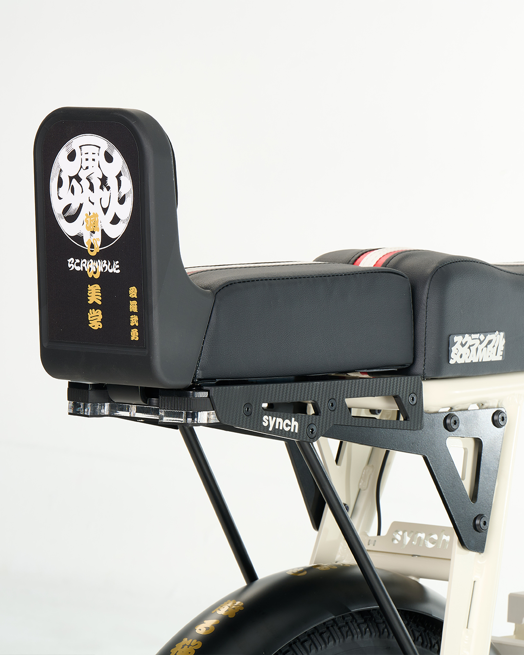 The bike features custom Scramble logo hits throughout, reminiscent of our Baka nogi set, and in terms of practicality, it has a storage caddy (which is also removable), an extra seat for a passenger (also removable), a decorative, bosozoku inspired backrest (also removable), and plenty more for you to discover.