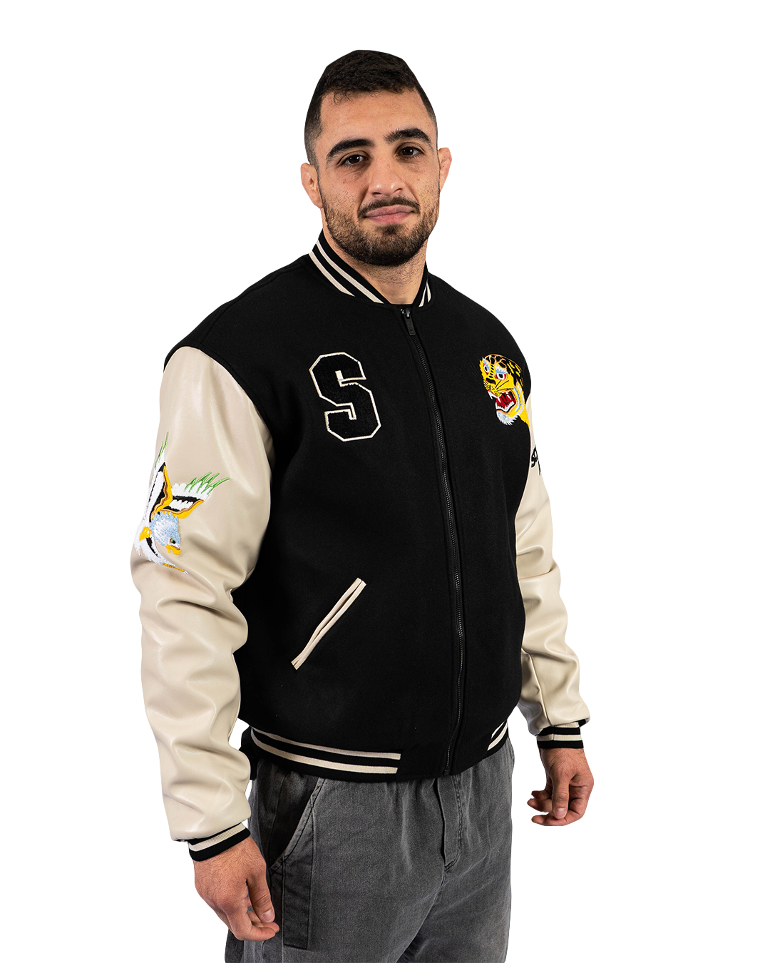 This limited edition jacket features artwork from the talented Kieran Hoohar, a tattoo artist and jiujitsu enthusiast in London. The artwork is made up of firm favourites from tattoo illustrations in tiger and snake, jaguar, and eagle images, all done in Kieran’s signature style.