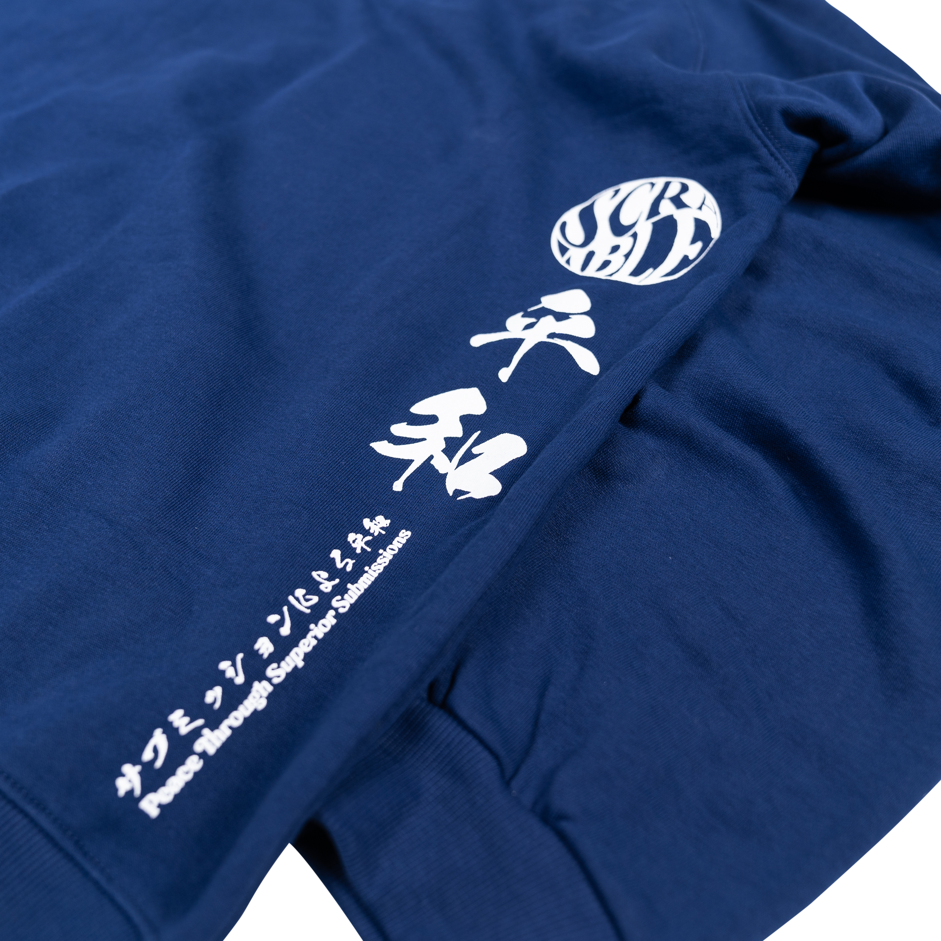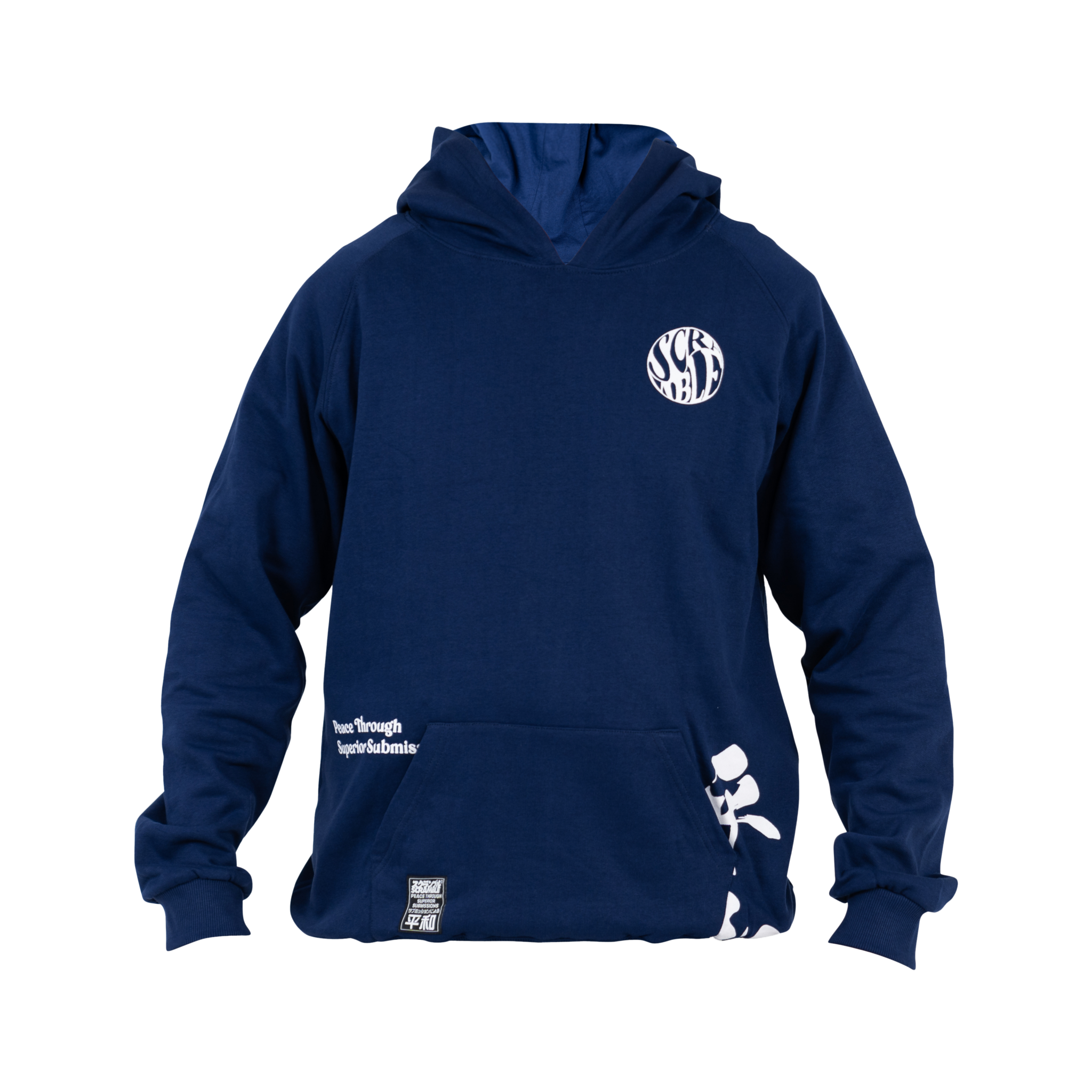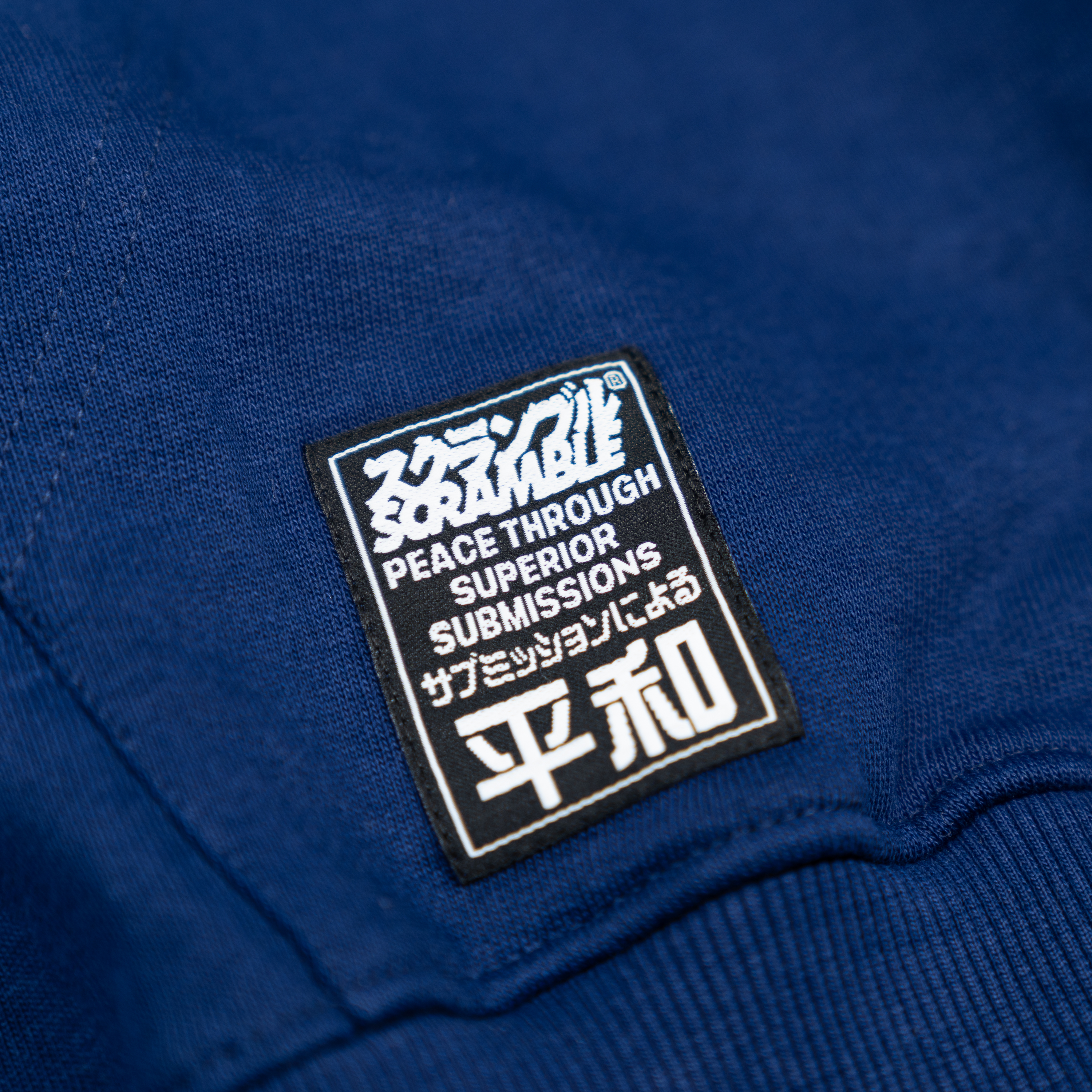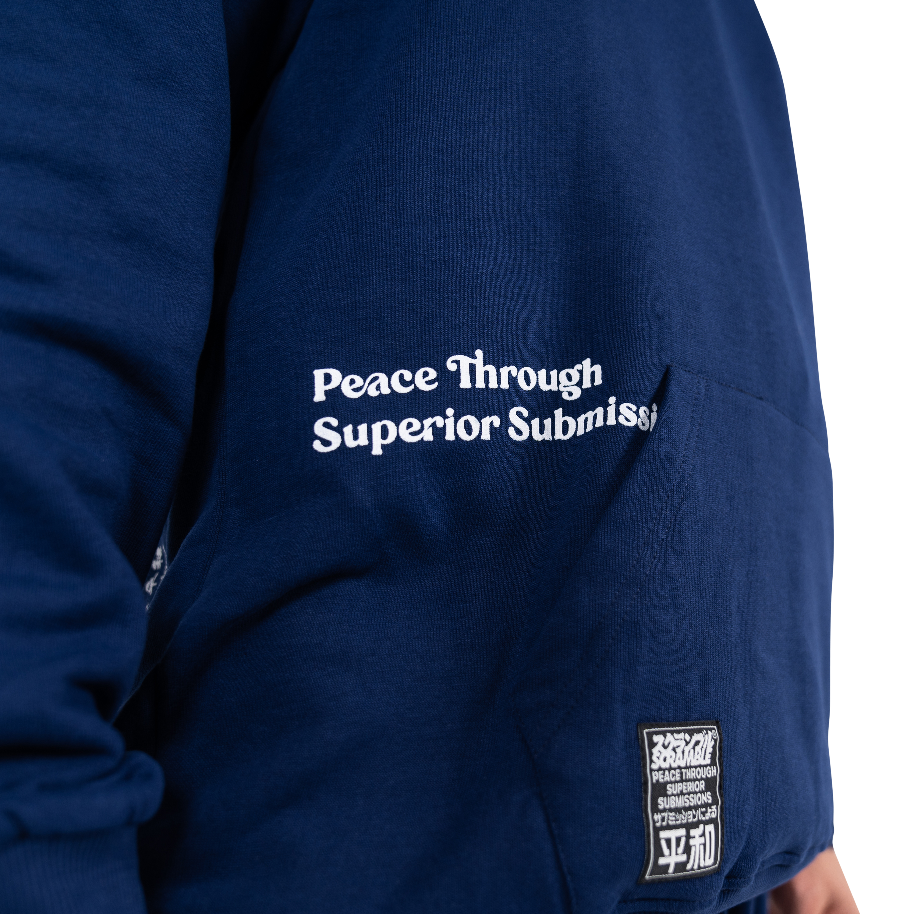 The Scramble Yin Yang hoody and jogger set is a relaxed and comfortable jogger set made from quality cotton, featuring unique, asymmetrical prints and subtle detailing. Based on the theme of Peace through Superior Submissions, we have a Scramble Yin Yang logo treatment as well as our signature blend of Japanese and Western typography.