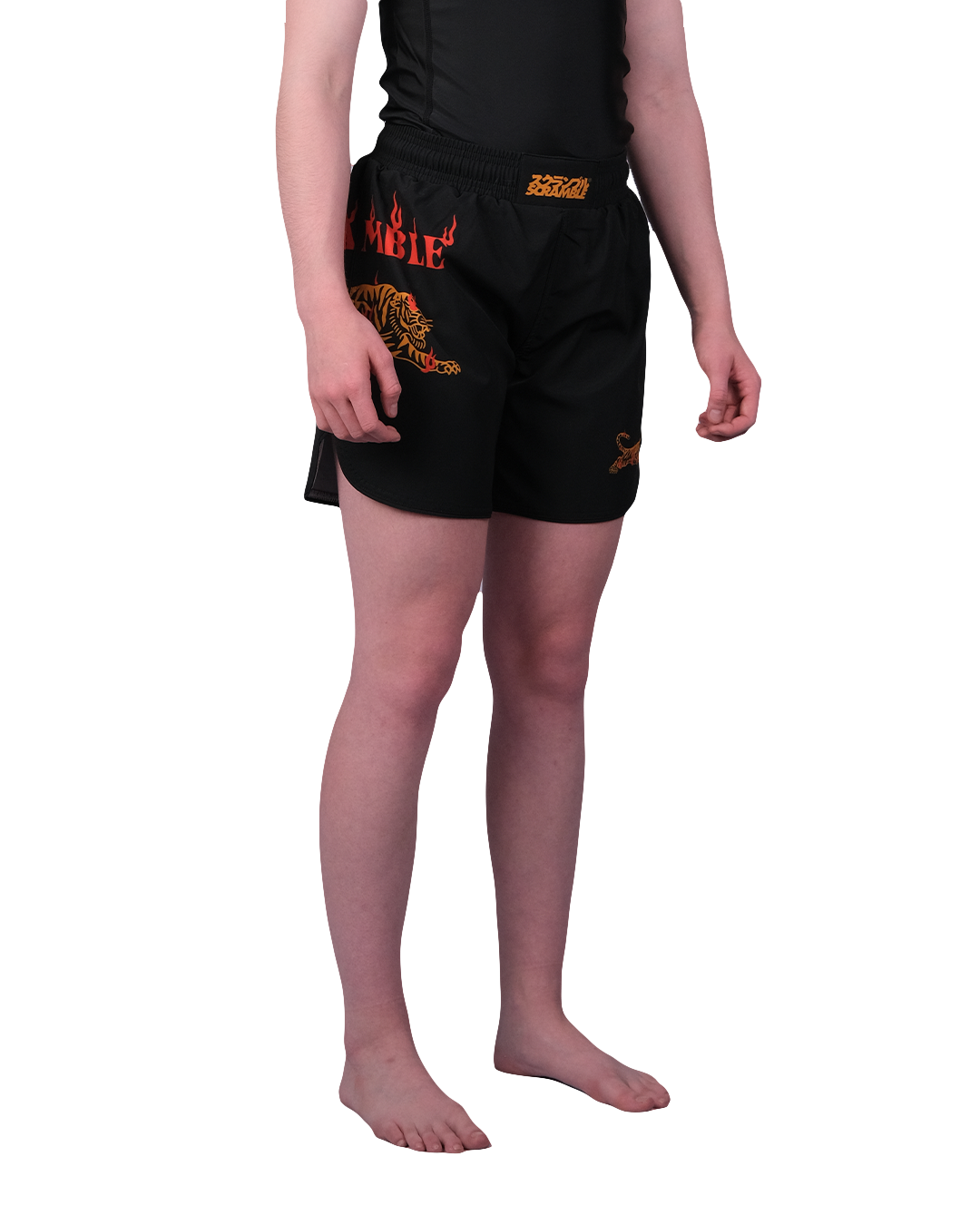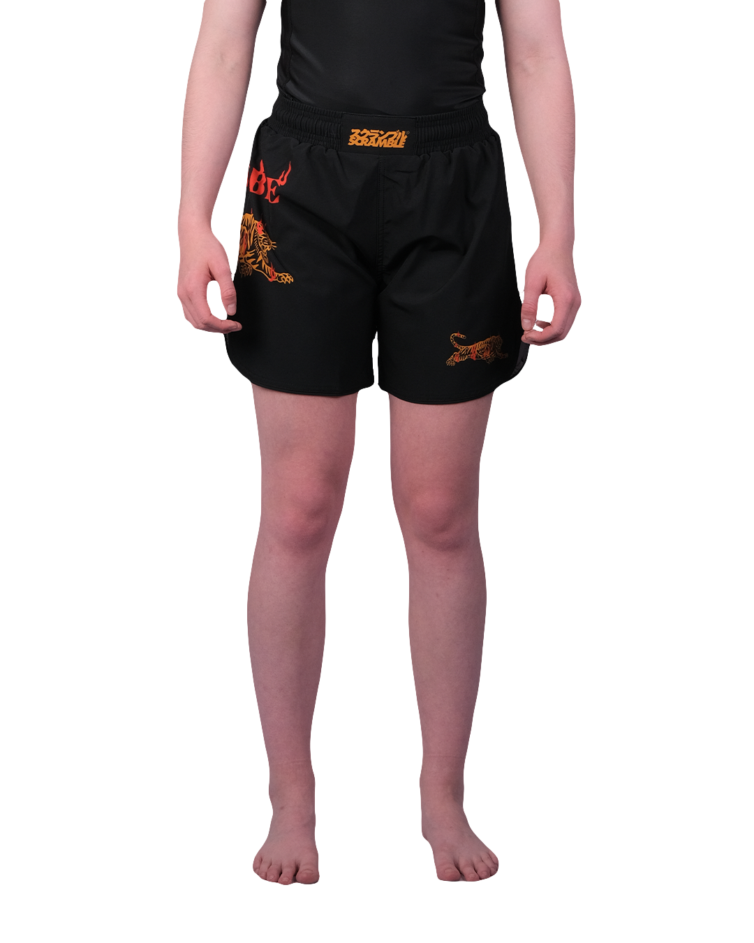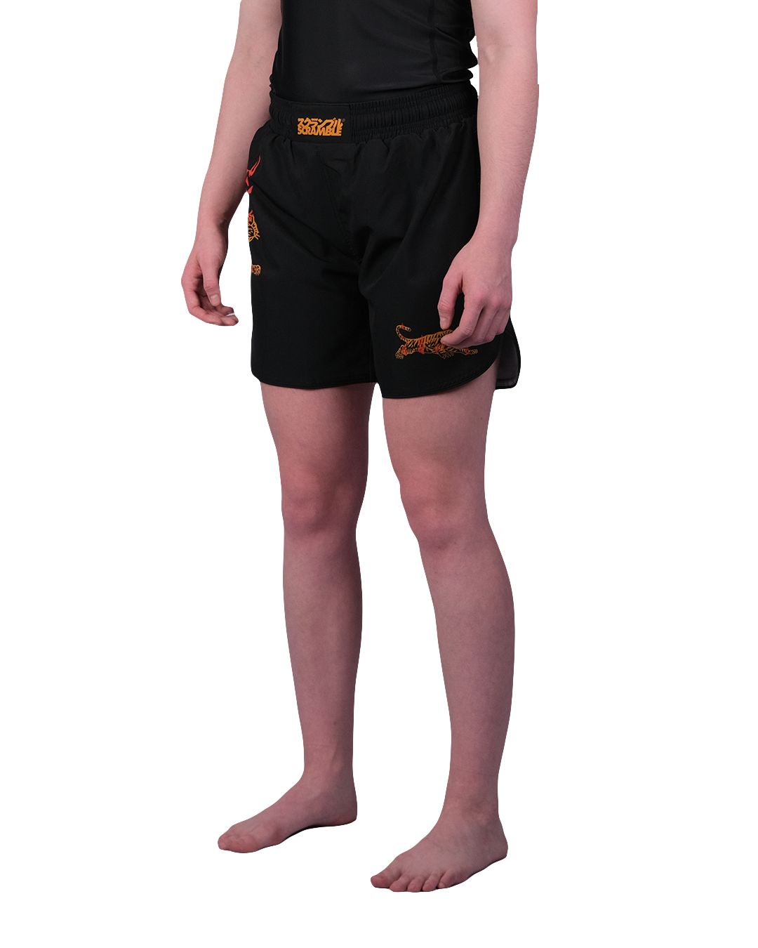 These shorts are built for grappling, no-gi, MMA training, and any athletic activity. They offer a close, secure fit with an elastic waistband and pair perfectly with snug underlayers.