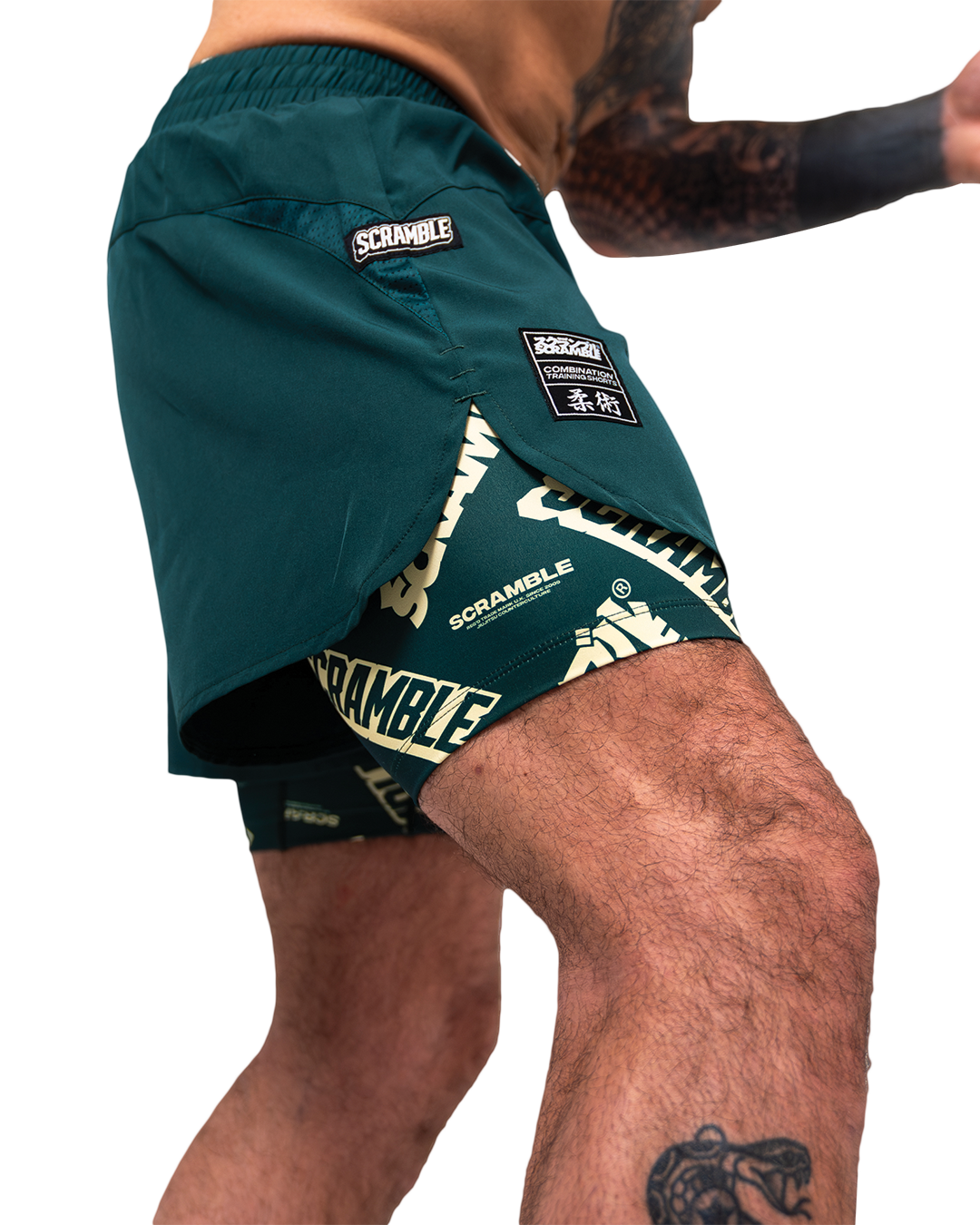 Our Combinatino Shorts are universally recognised as one of the best pairs of training shorts on the market today. These shorts come with a sleek ‘Scramble everywhere’ inner Lycra layer and are designed for various training purposes, including jiujitsu, no-gi grappling, running, and gym workouts. Their design includes an inner Lycra layer and a short, above-the-thigh outer layer for maximum comfort and performance.