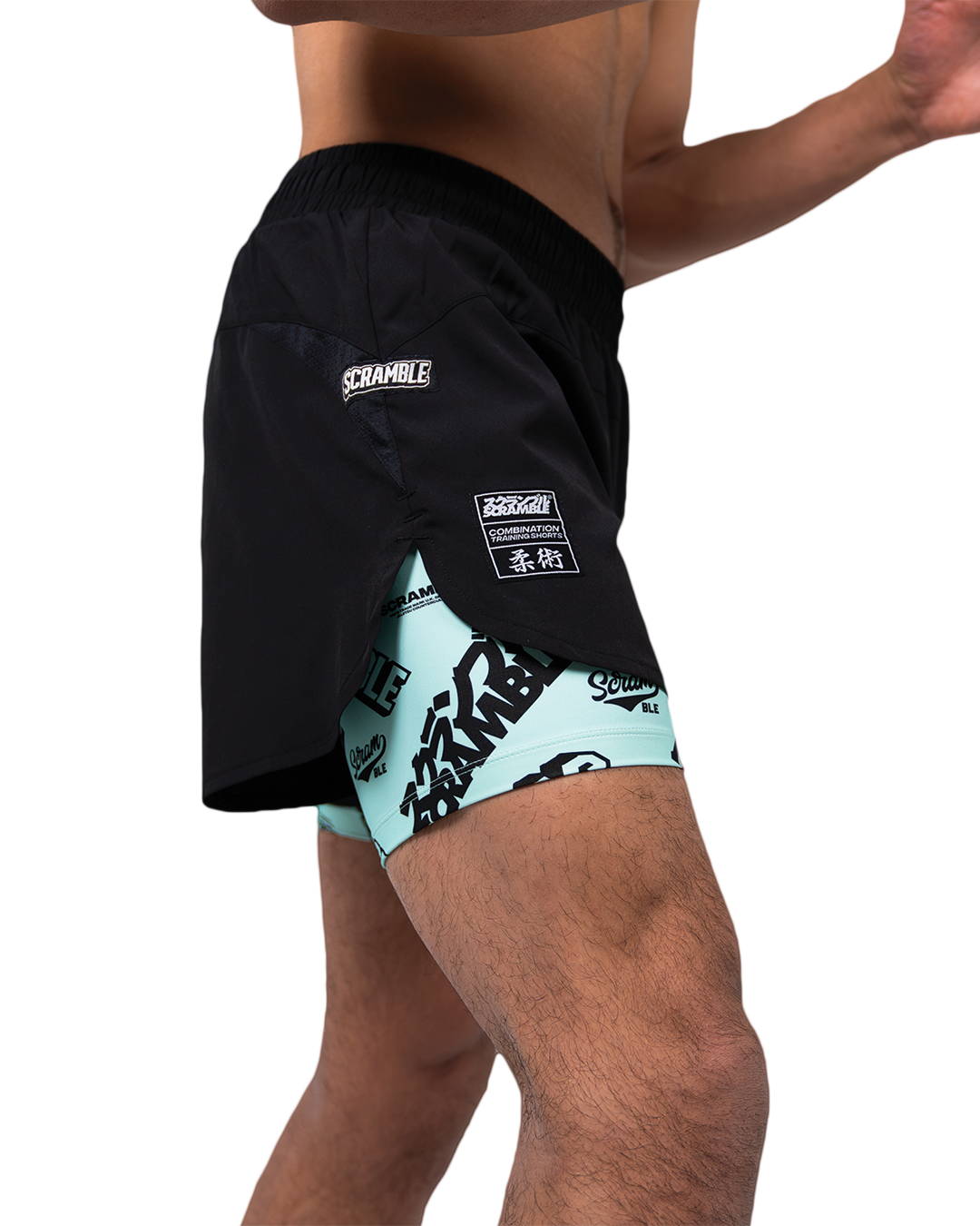 Our Combinatino Shorts are universally recognised as one of the best pairs of training shorts on the market today. These shorts come with a sleek ‘Scramble everywhere’ inner Lycra layer and are designed for various training purposes, including jiujitsu, no-gi grappling, running, and gym workouts. Their design includes an inner Lycra layer and a short, above-the-thigh outer layer for maximum comfort and performance.