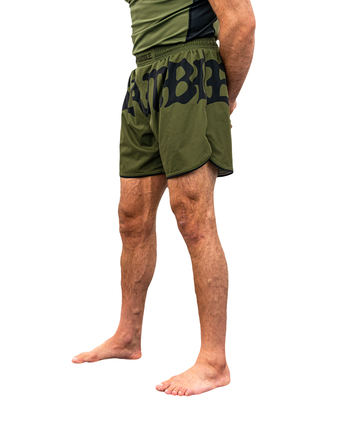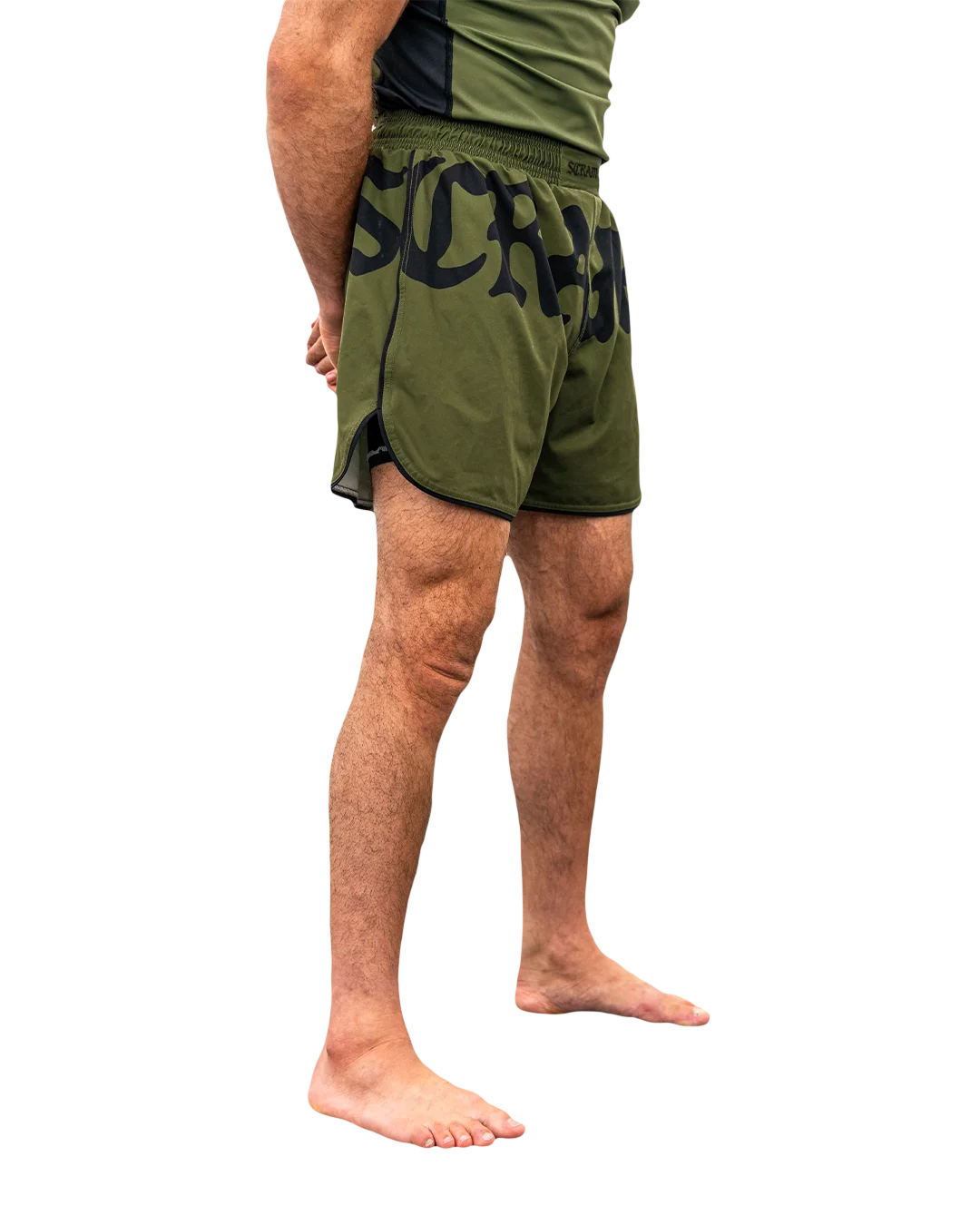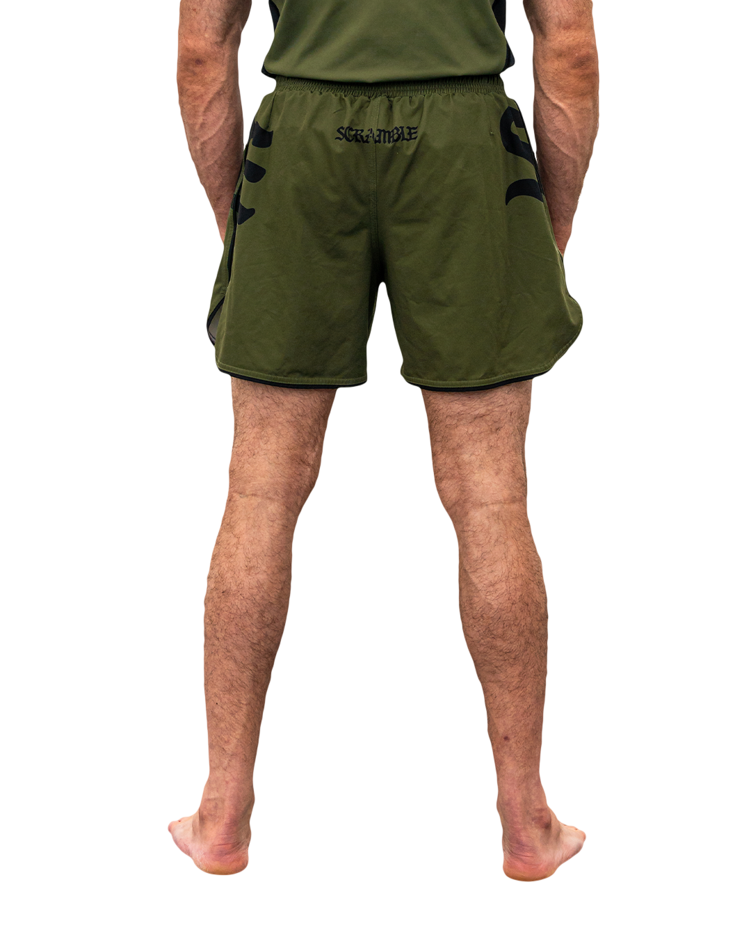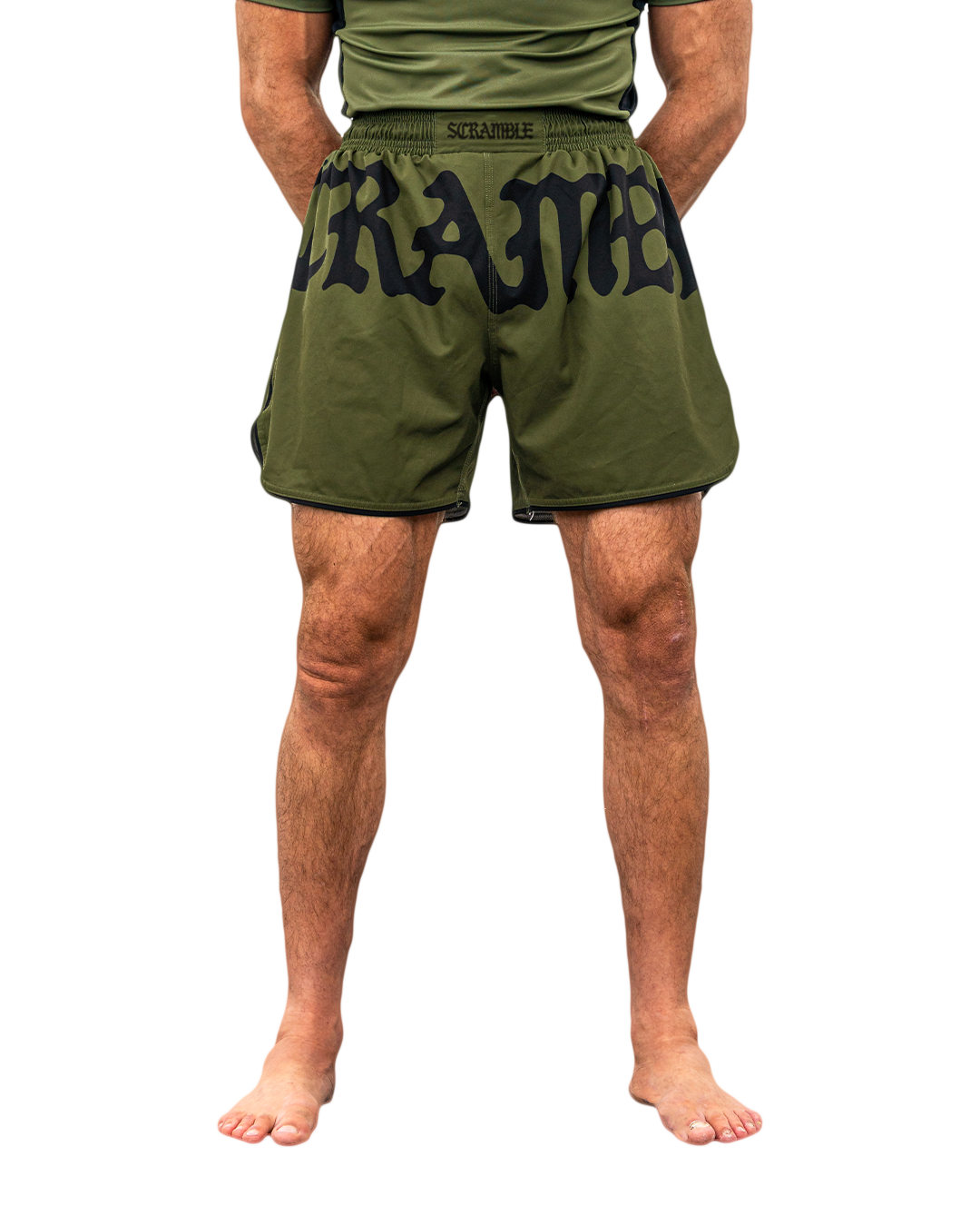 Scramble athlete Ethan Crelinsten (formerly of Craig Jones’ B-Team, now of Simple Man Martial Arts) loved the original black and white Glyph nogi rashguard so much, he asked us to put together a whole set in colours he chose. So, we have the Glyph set – which now includes shorts – in both Olive Green and Burnt Orange colourways. The Glyph set applies a simple gothic graphical theme and Scramble type treatment, which spans multiple panels across the garment, with a complimentary, smaller logo on the reverse side. Limited quantities, no restocks.