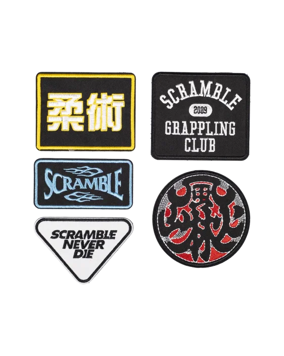 Simple logo designs from Scramble, on high-quality woven patches with velcro.