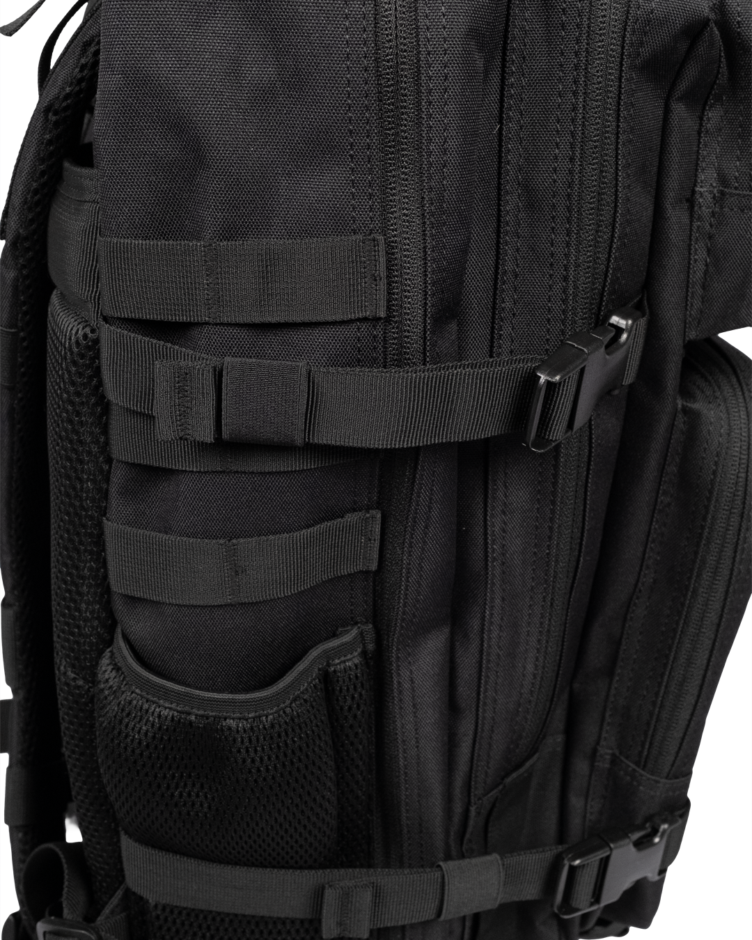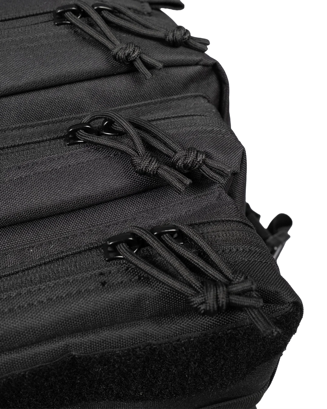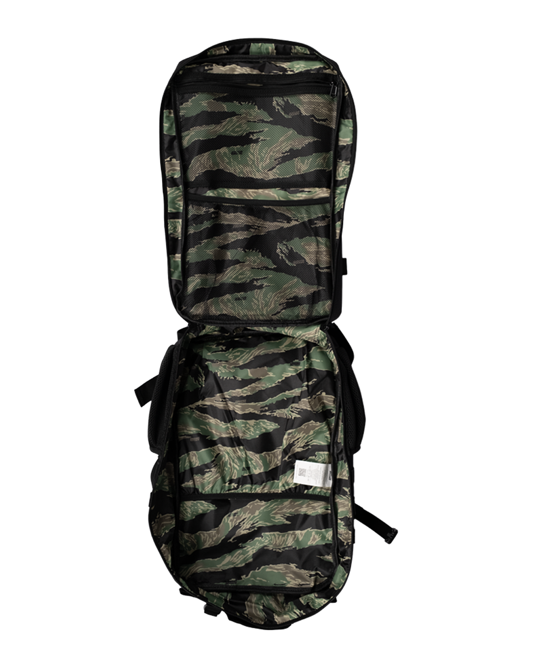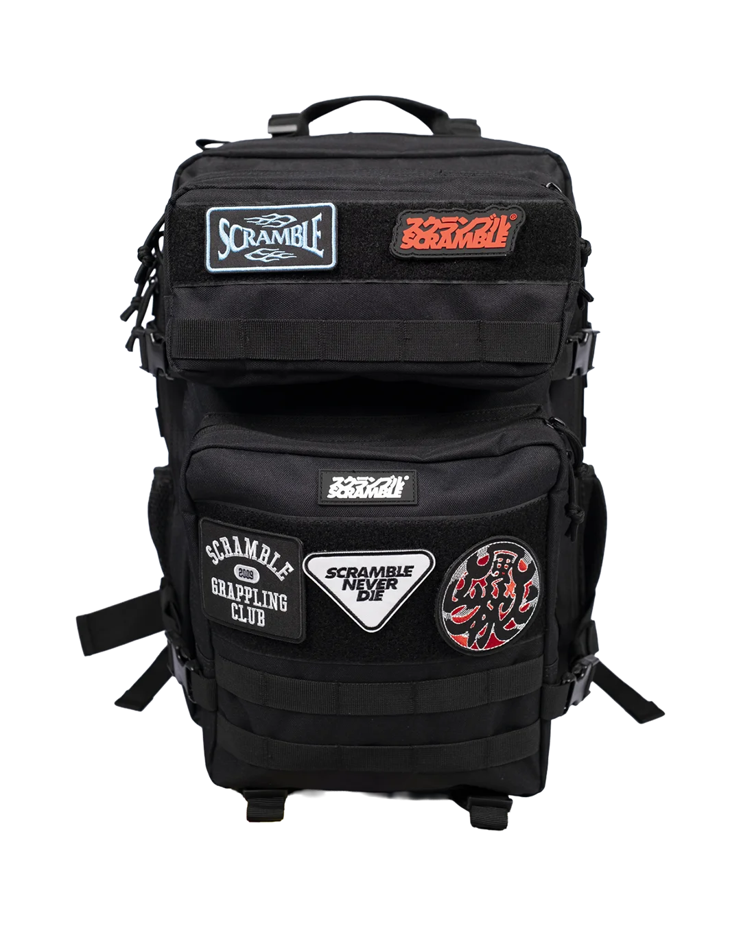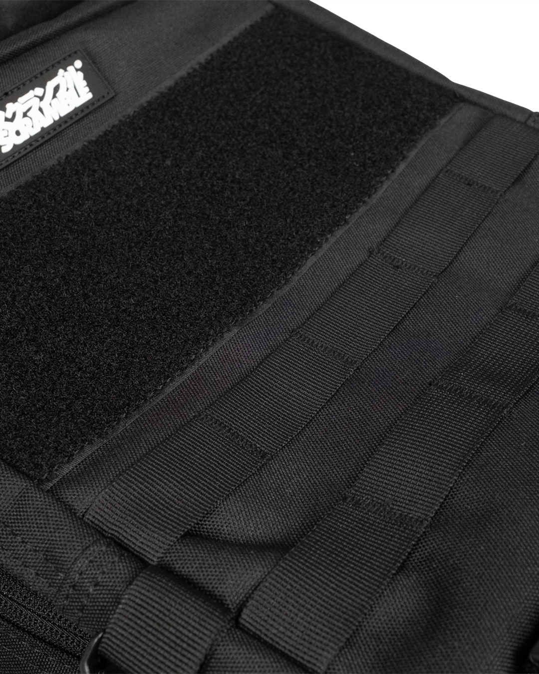We went back to basics for this heavy duty tactical backpack. Huge 45L capacity but still compact enough to use daily, the Scramble Kogeki backpack is made from heavyweight 900D waterproof polyester. The front has two velcro spaces for you to personalise with your own patches and every bag comes with a free, BJJ-ranked colour Scramble logo. You can also buy a patch pack to further personalise the bag. Our Kogeki backpack features our custom Tiger Camo printed all across the inner. The inner has two large main compartments, and inside each compartment are a number of pouches and storage spaces for smaller accessories. The front has a number of large storage pouches perfect for accessories like mobile phones, finger tape, mouthguard, deodorant, etc. And even thought this is primarily a training backpack, the back has a padded laptop sleeve for working on the go. The shoulder straps have a front chest strap for extra security for when jogging, cycling etc. The bag also features a hard-wearing nylon Molle system for optional extra attachments.