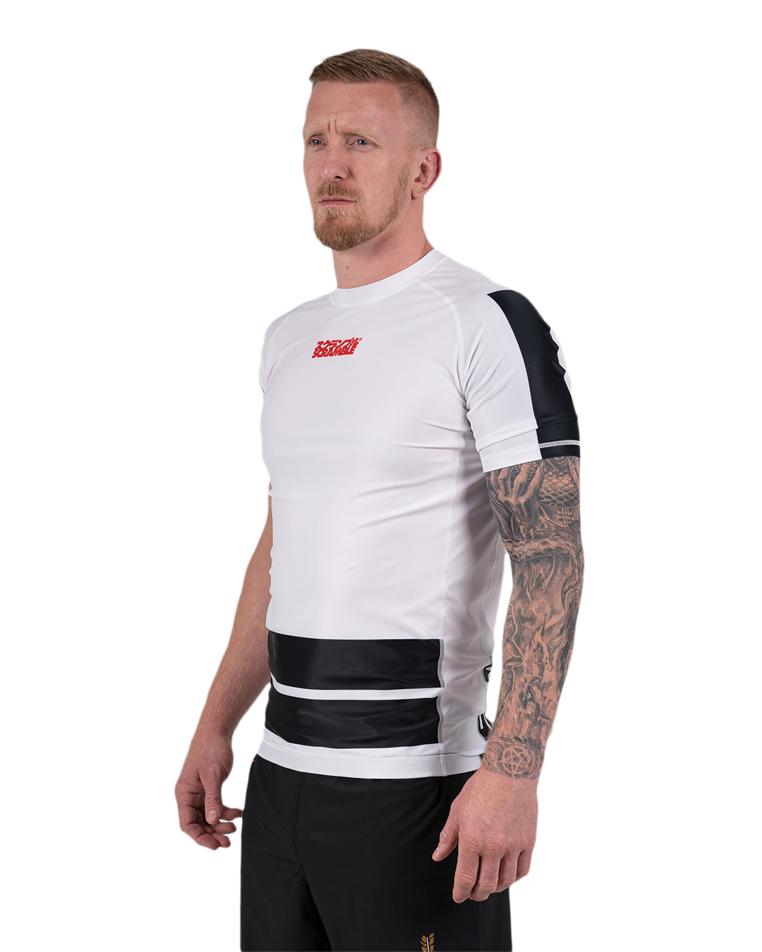 Our ranked rashguards follow all IBJJF guidelines for rank colour rashguards, featuring accents in the belt rank that make up the required percentage to compete in IBJJF competition, or simply to train and compete in no gi jiujitsu with attire based on your rank. The rashguards are made with a superior polyester blend that reduces pilling, as well as high quality stitching and panels that move with your body.