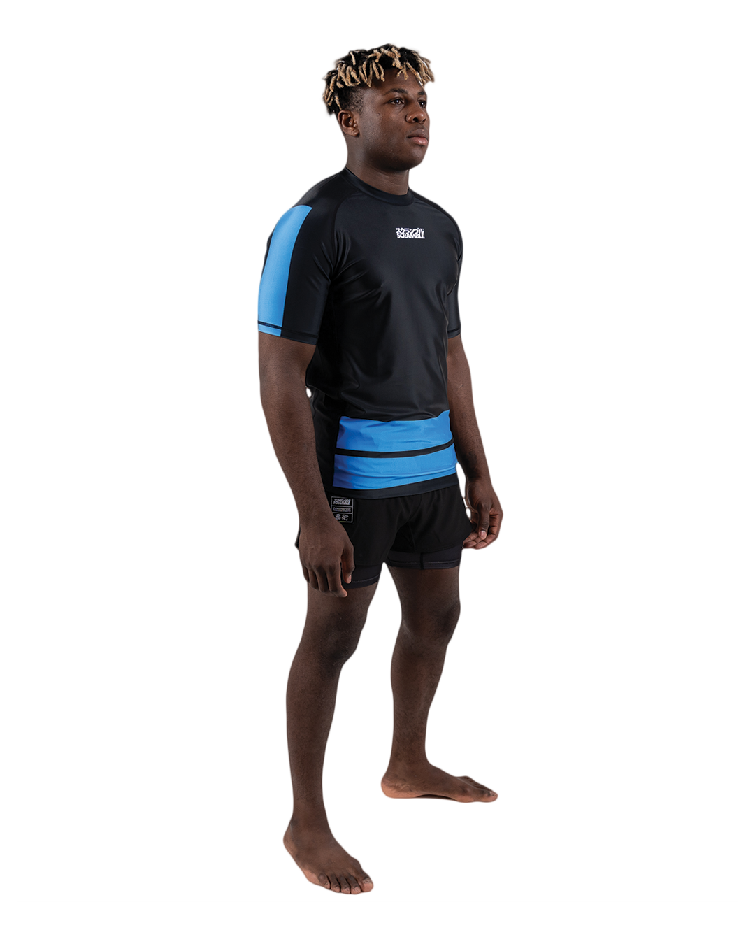 Our ranked rashguards follow all IBJJF guidelines for rank colour rashguards, featuring accents in the belt rank that make up the required percentage to compete in IBJJF competition, or simply to train and compete in no gi jiujitsu with attire based on your rank. The rashguards are made with a superior polyester blend that reduces pilling, as well as high quality stitching and panels that move with your body.