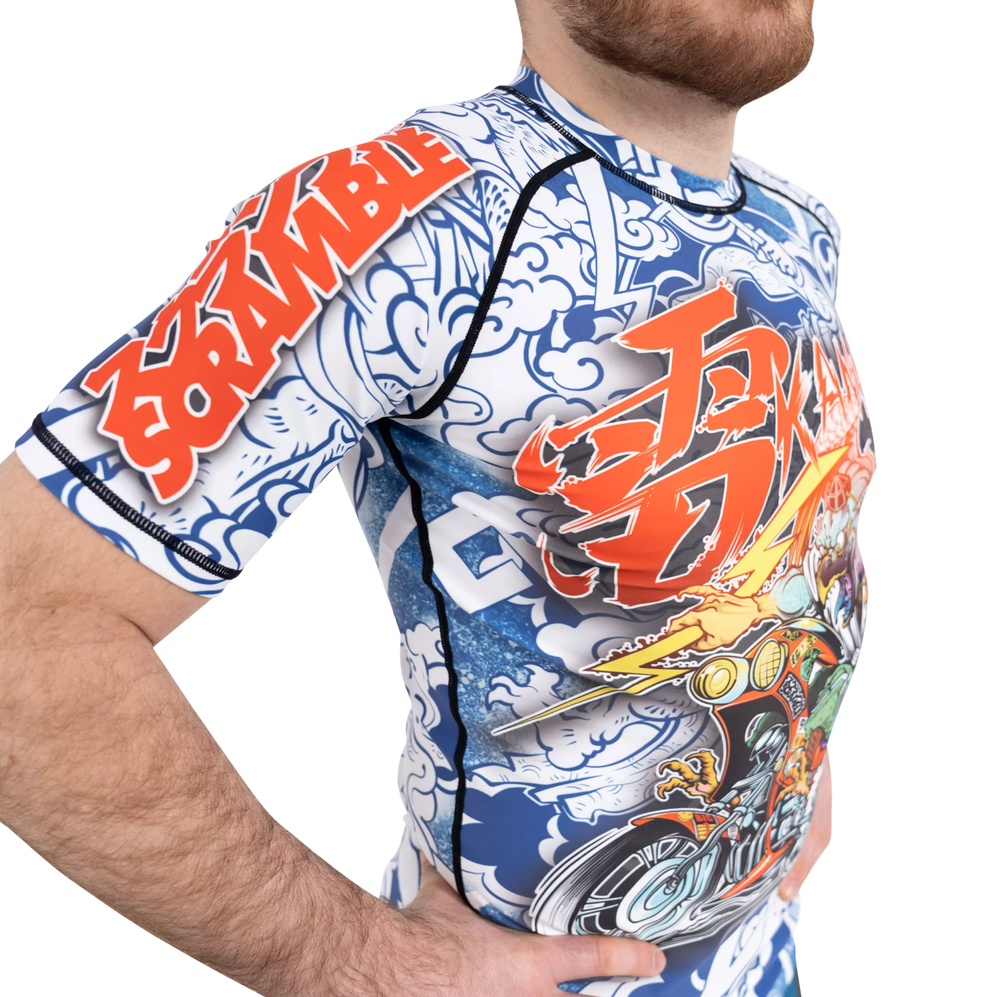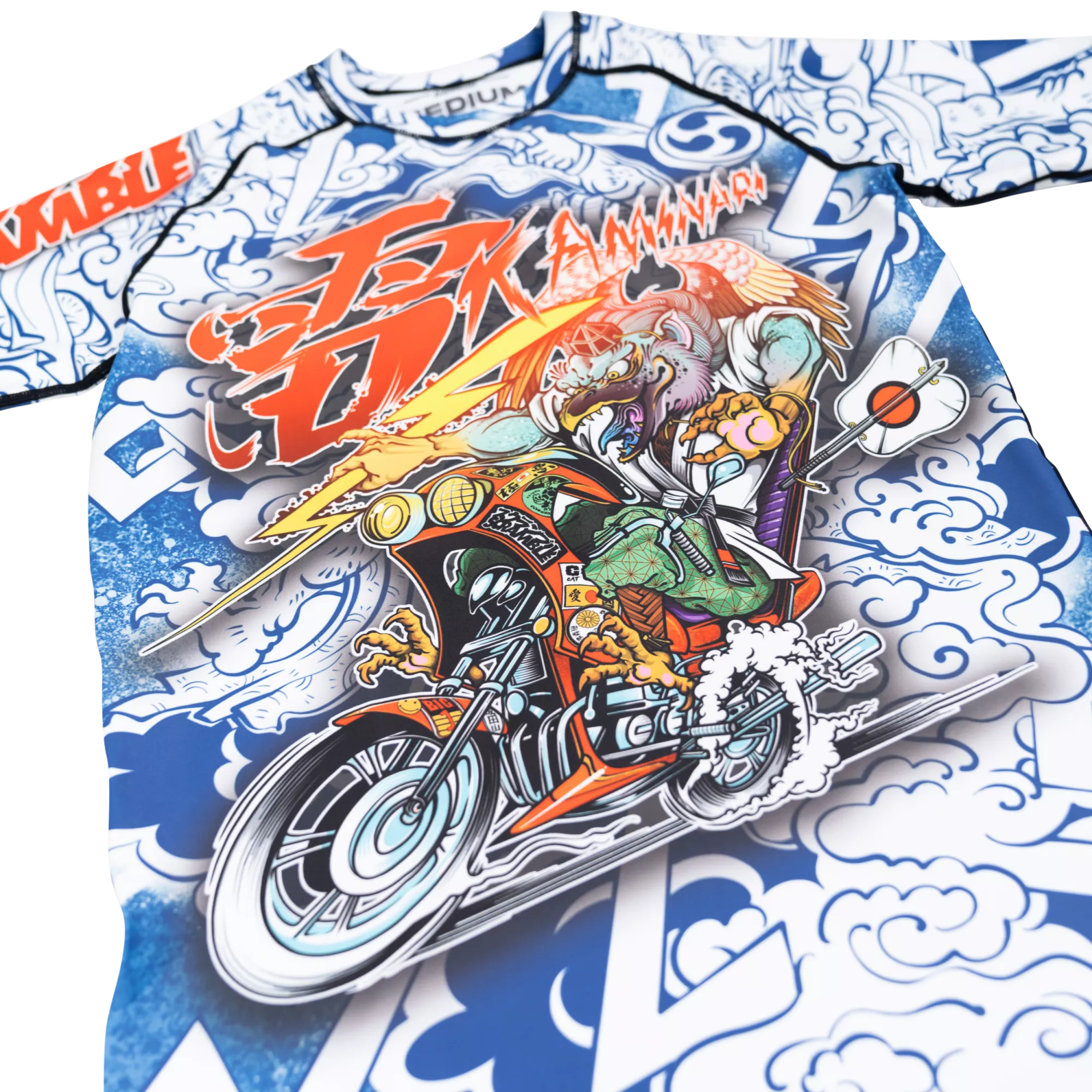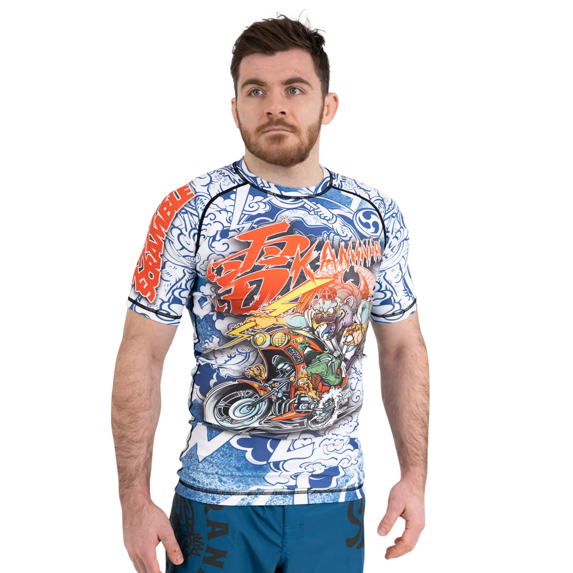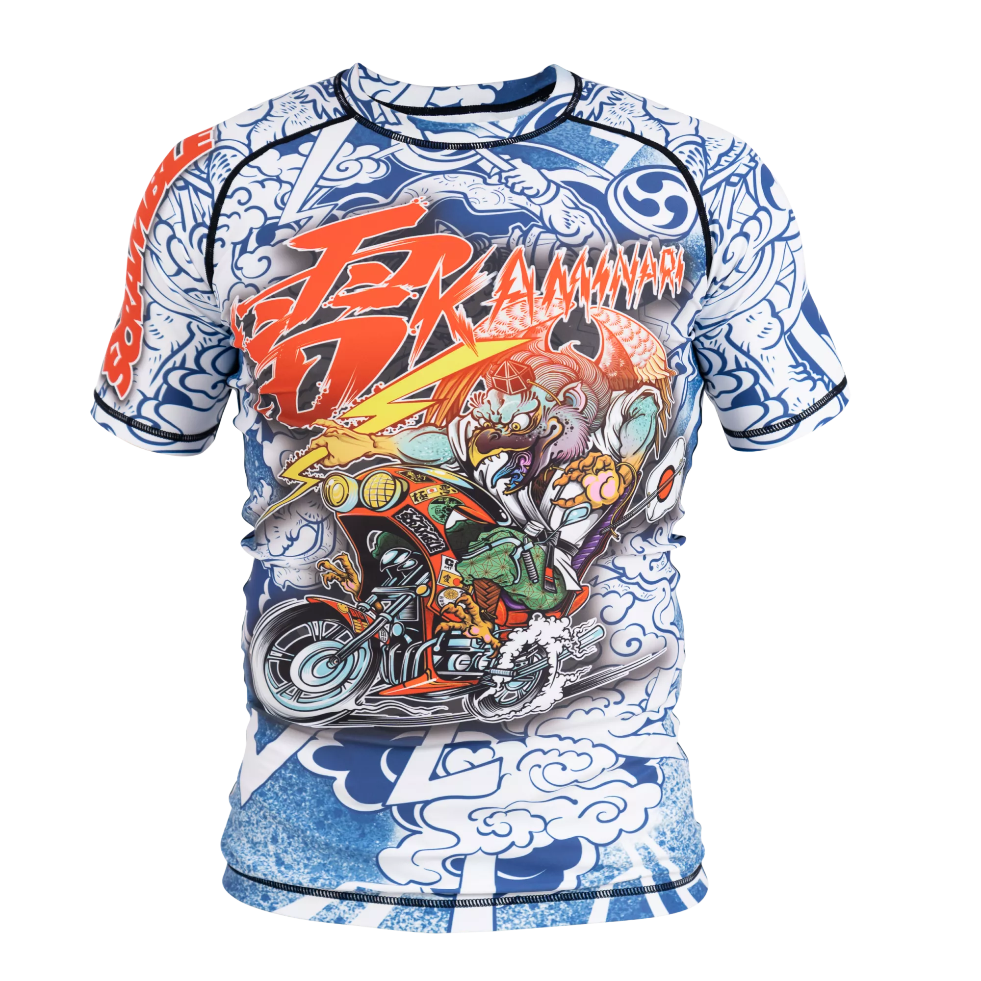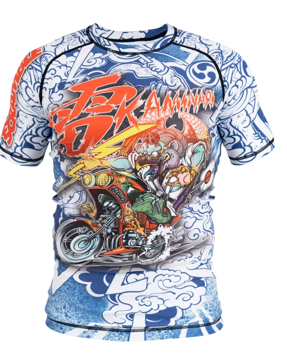 This is a bit special. We linked up with artist and all around cool guy Luke Satoru, who drew up this spiffing Tengu Bosozoku for us. He hand drew it (the original, that is. Not every single rashguard) and we plonked it on this super high quality short sleeved rashguard. It’s a real showpiece, a head turner, a conversation starter, great for open mats or just going to the supermarket or whatever if you are John Danaher. You should probably buy this ASAP, like yesterday.