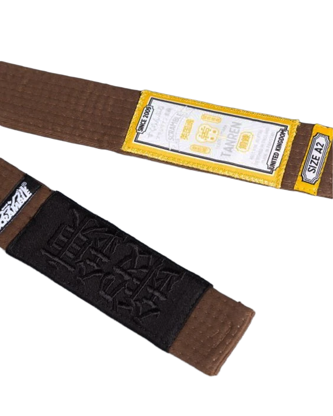 The 4th generation of Scramble belt is made of premium belt like material and is long and windy, ideal for tying your Gi up and showing people just how good you are at jiujitsu….impressive. Featuring a few throwbacks in design to the V1 Tanren belt such as some pretty sweet rank bar embroidery and a fancy gold type label (designed to show how fancy and classy your tastes are) this is made to our usual high quality.