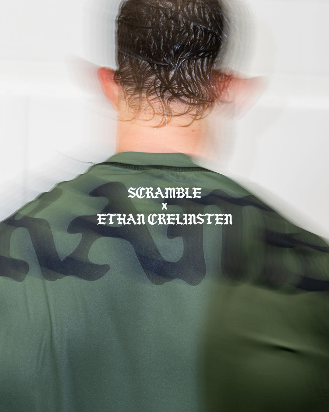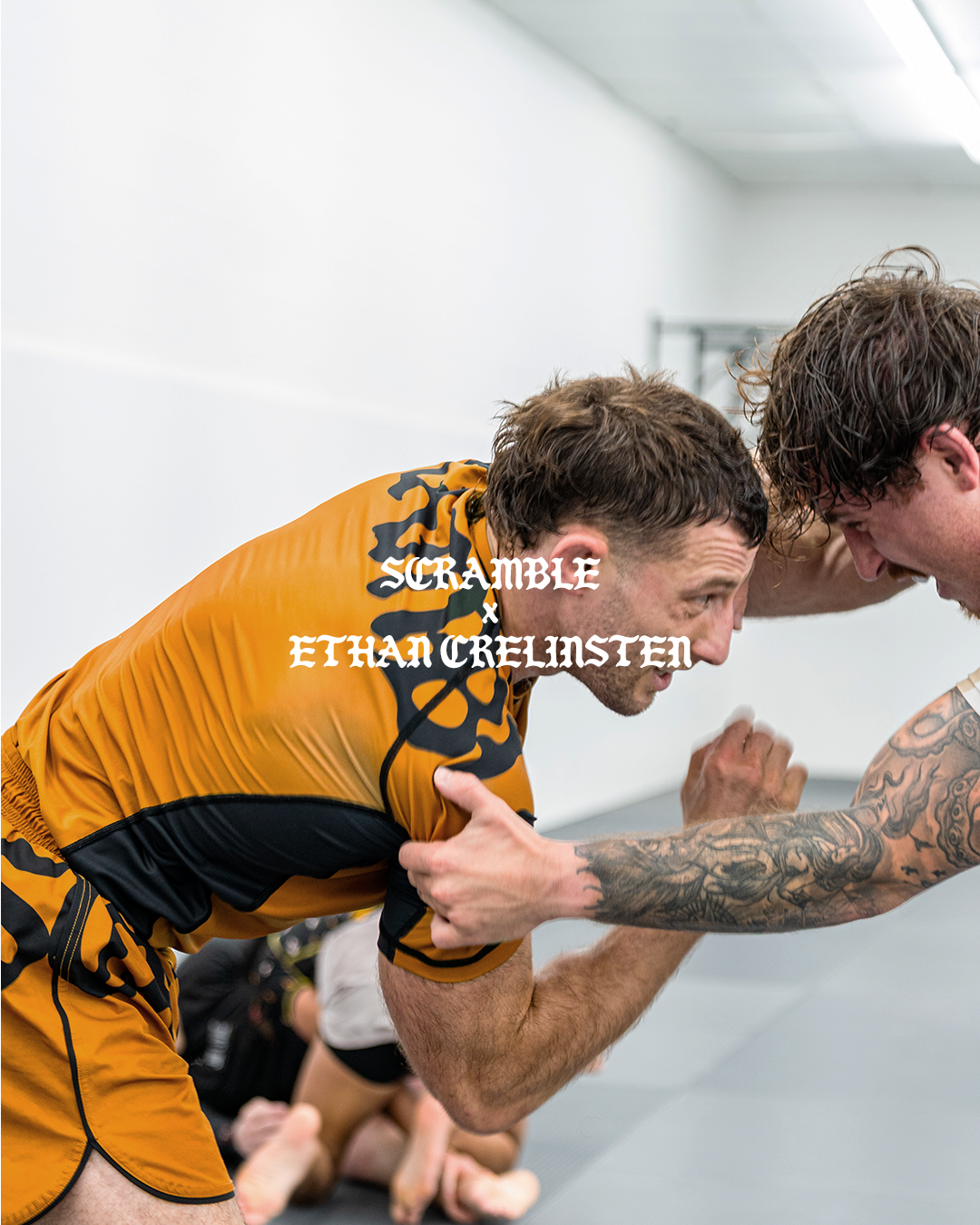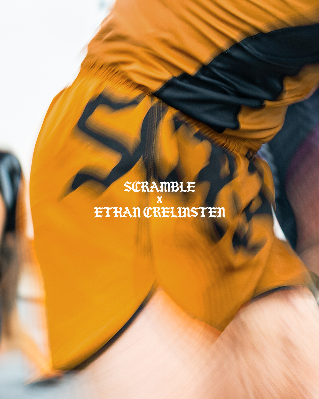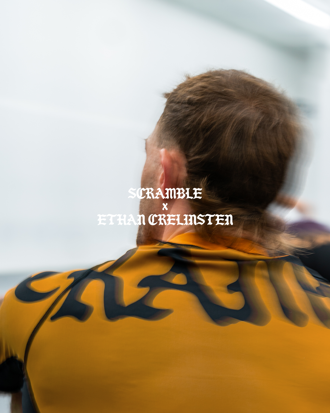 Scramble athlete Ethan Crelinsten (formerly of Craig Jones’ B-Team, now of Simple Man Martial Arts – and before all that, a famed member of The Blue Basement, which John Danaher ran from Renzo Gracie NYC) loved the original black and white Glyph nogi rashguard so much, he asked us to put together a whole set in colours he chose. So, we have the Glyph set – which now includes shorts – in both Olive Green and Burnt Orange colourways. The Glyph set applies a simple gothic graphical theme and Scramble type treatment, which spans multiple panels across the garment, with a complimentary, smaller logo on the reverse side. Limited quantities, no restocks.