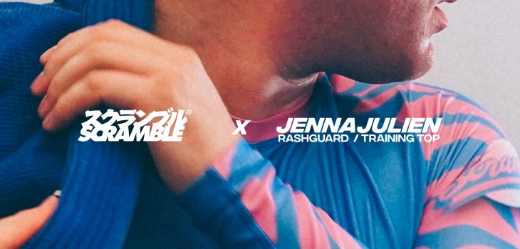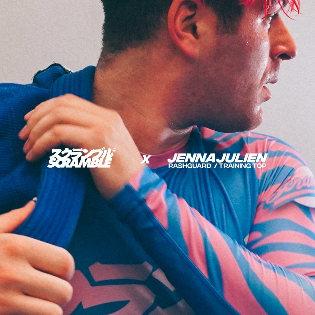 Well, Jenna’s boyfriend Julien Solomita likes jiujitsu. It turns out he also likes Scramble, and got in touch with us at some point a year or so ago. Since then we’ve released a collaboration t-shirt: