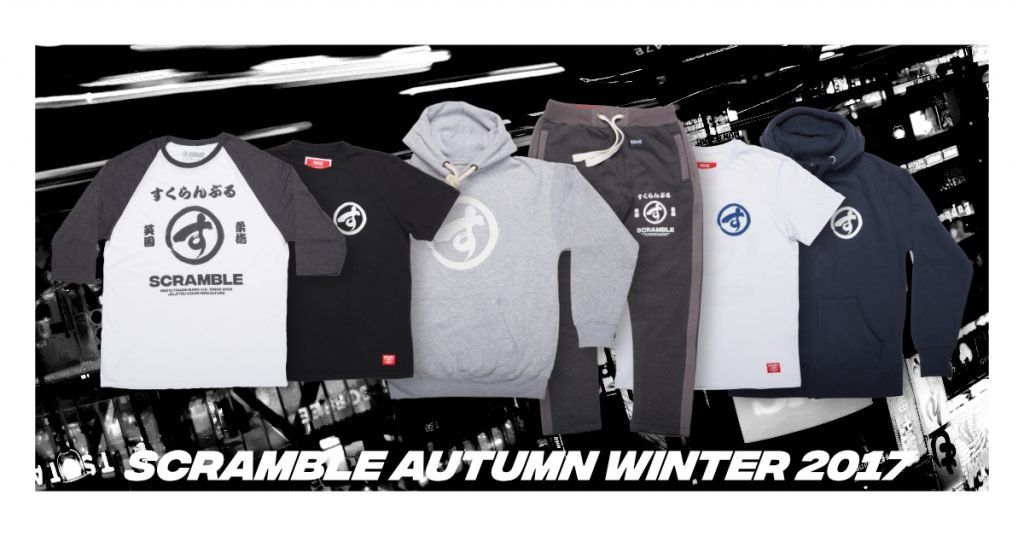 The Scramble Autumn / Winter 2017 Drop features a centrepiece brush mark designed by a calligraphy artist based in Kyushu in south Japan. The logo is incorporated into a traditional maekake inspired typographic design. These designs are traditionally simple in layout and bold in execution. These pieces were inspired by a walk through the historic neighbourhood of Akasaka in Tokyo, in between training sessions and meetings.
